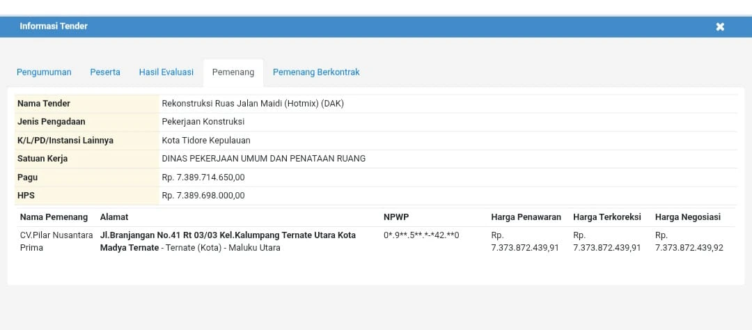 Ia menegaskan, jika benar terjadi pemalsuan jenis pekerjaan dalam dokumen tender, maka PPK dan Dinas PUPR Tidore Kepulauan harus bertanggung jawab.