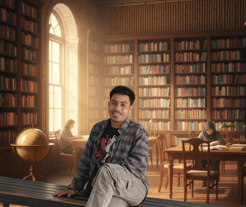 Perkataan itu mulai menyiksa batinya, rasa takut muncul melawan pikiran dan qolbunya. Pada suatu malam, ia memutuskan berkunjung ke sebuah perpustakaan buku, ia melihat berbagai macam judul buku yang terusun rapih menghiasi dinding, kecantikan itu membuat ia takjub, seakan sebuah ruangan ini ibarat pintu yang membawa kita kepada peradaban baru.