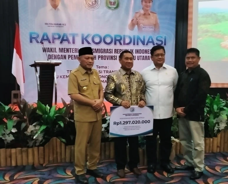 Ia menambahkan, penyerahan bantuan dilakukan secara simbolis oleh Wakil Menteri Transmigrasi, Viva Yoga Mauladi, kepada Bupati Kepulauan Sula Fifian Adeningsi Mus yang diwakili oleh Kepala Bappeda, Ir. H. Syahjuan Fatgehipon, serta didampingi Kadis Tenaga Kerja dan Transmigrasi, M. Nasir Yoisangadji.
