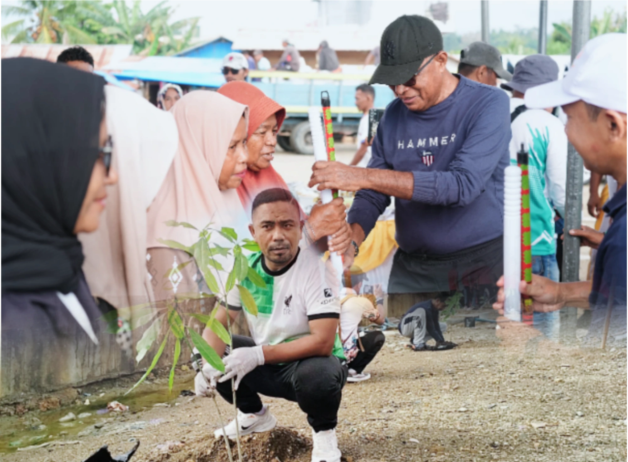 Selain bersih-bersih, Pemda Sula juga menanam pohon di sekitar pasar serta menyerahkan bantuan alat kebersihan kepada masyarakat.